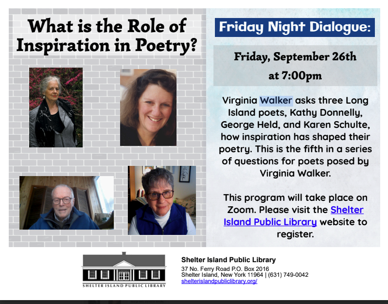 join Virginia Walker in reading their own poetry and poems from the Varney Collection at the Shelter Island Library.